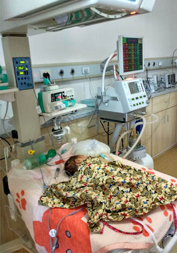 患兒李某葉子,系第4胎第3產(chǎn),孕41+1周,因“臍帶繞頸1周宮縮乏力、羊水胎糞污染”行剖宮產(chǎn)娩出,出生體重4.1kg,臍帶繞頸1周,羊水Ⅲ度混濁?;純荷蠹闯霈F(xiàn)肌張力差,伴有氣促,時(shí)有呻吟,即轉(zhuǎn)入兒科NICU,頭罩吸氧下仍氣促加劇,血氧飽和度<85%,心率達(dá)170-180次/分,急查胸片提示兩肺野散在小點(diǎn)片狀影,血?dú)夥治鎏崾劲蛐秃粑ソ?,診斷“新生兒胎糞吸入綜合征”。病情危重,遂予氣管插管、連接美囯紐邦呼吸機(jī)進(jìn)行有創(chuàng)機(jī)械通氣。經(jīng)過(guò)兒科戴朝暉主任、莊姞副主任醫(yī)師及全體醫(yī)護(hù)人員的精心治療,NICU醫(yī)護(hù)人員的全天候監(jiān)護(hù),機(jī)械通氣4天,順利撤機(jī),逐漸降低吸入氧濃度,患兒病情漸恢復(fù),母乳喂養(yǎng),吸吮有力,活力好,住院2周出院。