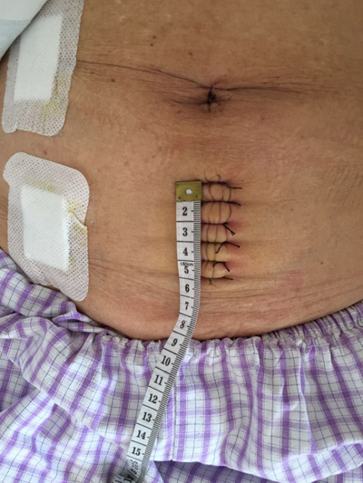 2017年5月20日,在福建醫(yī)科大學(xué)Di一附屬醫(yī)院胃腸外科主任、腔鏡學(xué)科組組長石錚教授的指導(dǎo)下,由我院外科主任成濤主刀,成功開展了腹腔鏡下結(jié)腸癌茛治術(shù),手術(shù)過程流暢、層次清晰,手術(shù)均取得了滿意的成效。術(shù)后患者入住ICU,術(shù)后第二天開始進(jìn)流質(zhì)飲食,進(jìn)食無惡心嘔吐、無腹痛腹瀉,第三天患者可自行下床活動(dòng),未感到切口疼痛,術(shù)后第九天切口拆線,切口甲級(jí)愈合,深切感受到薇創(chuàng)技術(shù)給患者所帶來的益處,讓患者及家屬對(duì)我院醫(yī)療力量、護(hù)理服務(wù)都表示相當(dāng)滿意。