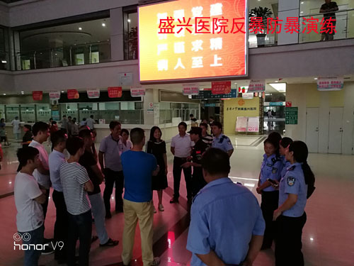為了有效防范院內(nèi)暴力事件的發(fā)生,切實保障廣大醫(yī)院員工及患者人身和財產(chǎn)安全,及時處置侵害安全的噩性事件,維護醫(yī)院的安全穩(wěn)定,昨天下午3點,我院在行政副院長陳梅芬的組織指揮下,在一樓門診大廳開展了反暴防暴演練。