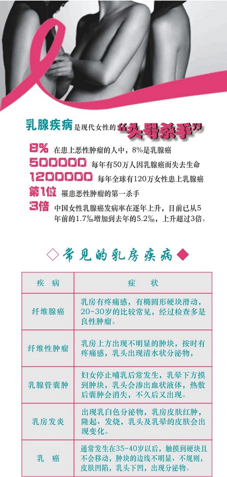 乳房對于每個女人都很重要,要好好維護它的健康。忙碌的女性應(yīng)該留意自己的胸前動向,養(yǎng)成良好的定期專業(yè)檢查的好習(xí)慣。長久的掉以輕心往往耽誤早期的發(fā)現(xiàn)和治療,使保乳手術(shù)“望乳興嘆”;只有定期到專業(yè)醫(yī)院進行深入的檢查才是“真正的保乳意識”。