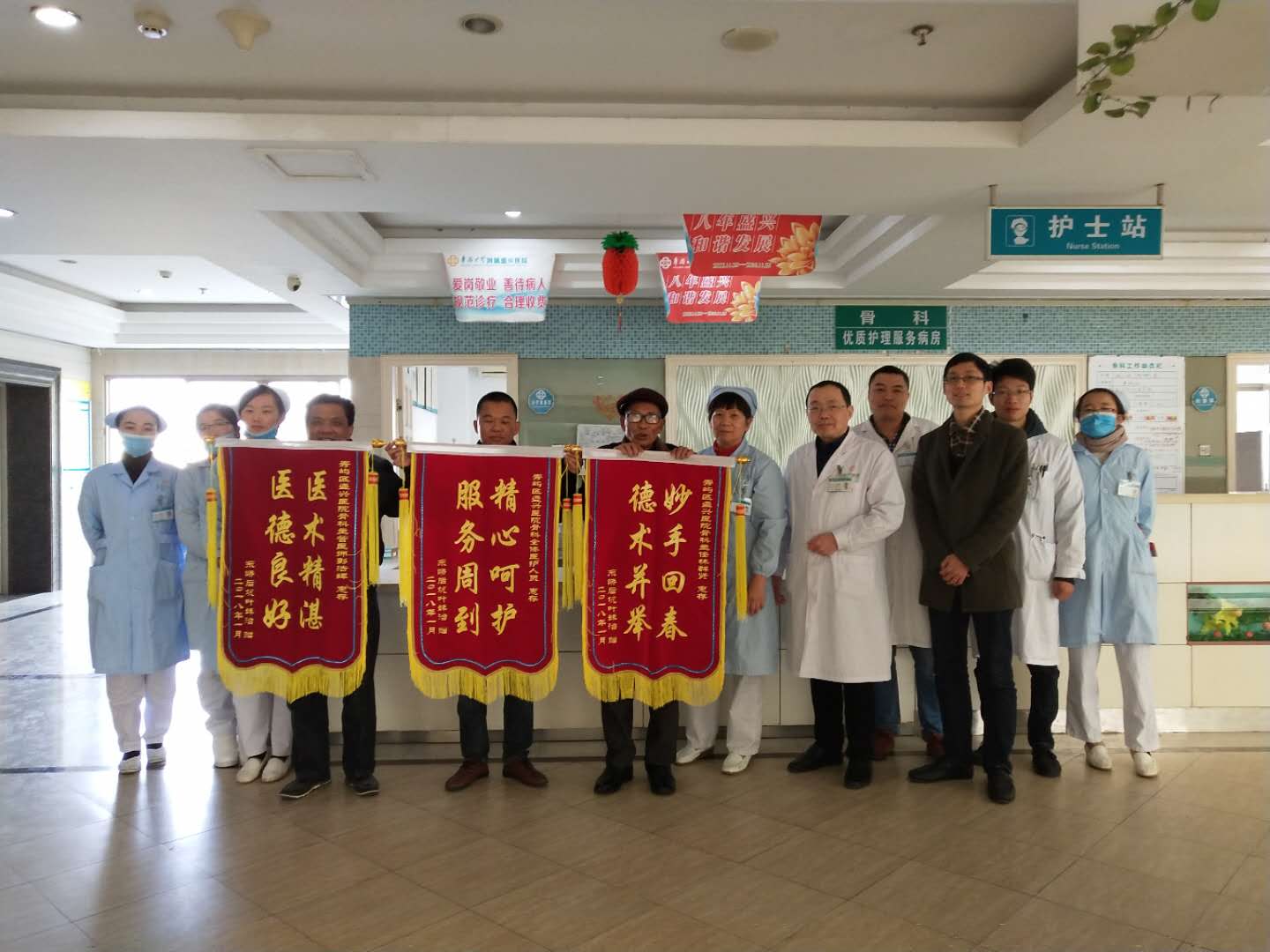 今天這三面錦旗對骨科的全體醫(yī)護(hù)人員來說,那是他們每一位醫(yī)護(hù)人員一點(diǎn)一滴付出,再次得到患者的認(rèn)可和肯定,這是一種鞭策,堅信今后他們將更加盡心做好工作,全心全意為患者服務(wù)。