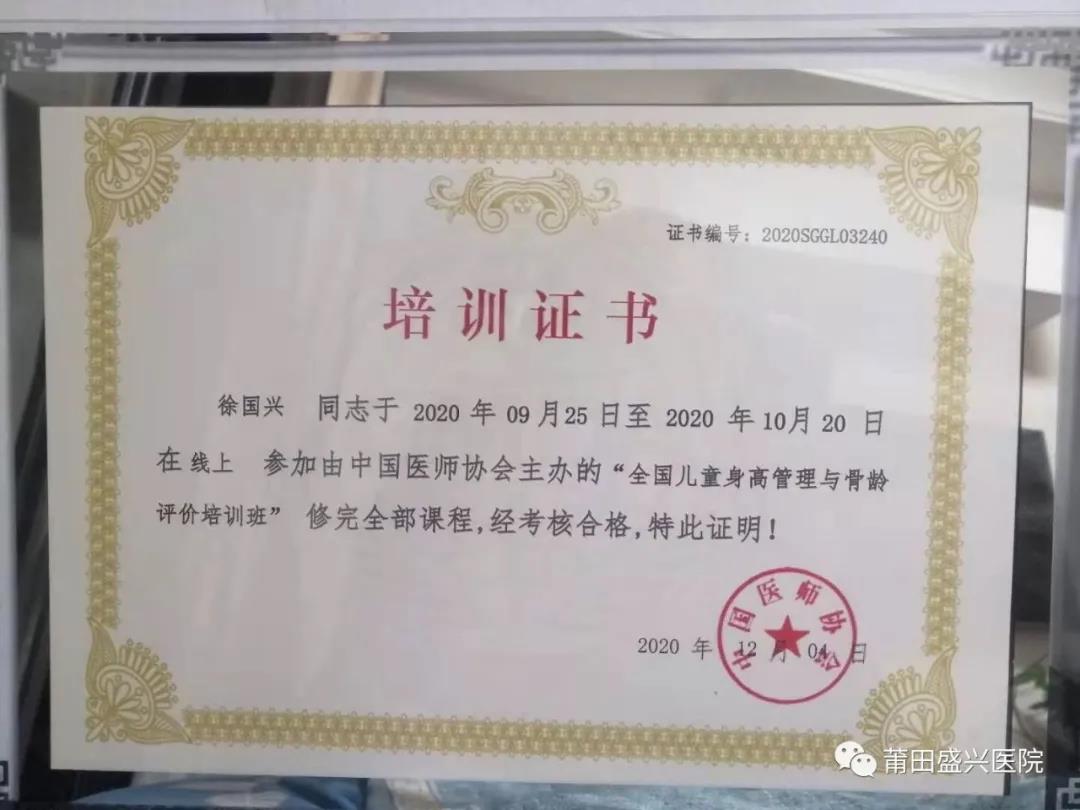 2020年師從莆田市第一醫(yī)院李金水主任,進(jìn)修學(xué)習(xí)“矮小癥、性早熟”相關(guān)知識(shí),對(duì)“矮小癥”、“性早熟”診療能夠熟練掌握。并順利通過國(guó)家醫(yī)學(xué)委員會(huì)舉辦的第20屆骨齡學(xué)習(xí)培訓(xùn)班,并取得骨齡評(píng)定合格證書。