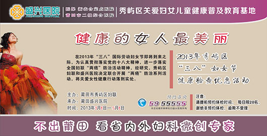“今天三八節(jié)莆田盛興醫(yī)院又開(kāi)始優(yōu)惠為女性體檢啦,38元可以做好多項(xiàng)目啊,婦科常規(guī)檢查項(xiàng)……